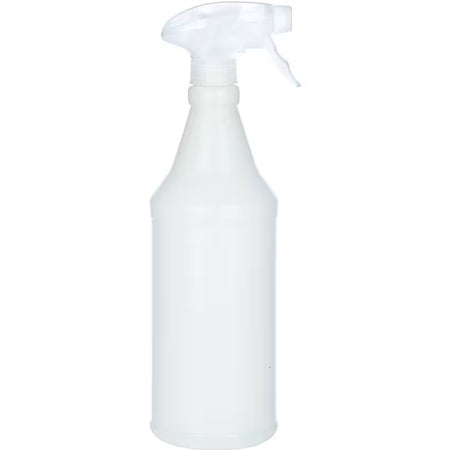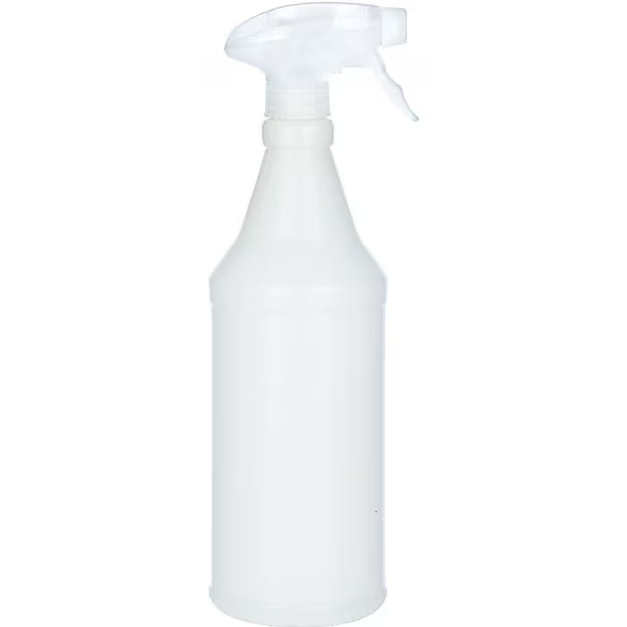 - Empty, plastic spray bottle features a trigger-type atomizer cap and flexible plastic tube that is ideal for dispensing cleaners