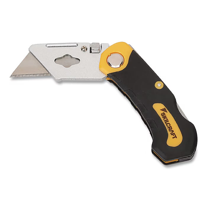 SKILCRAFT General Purpose Folding Utility Knife features an ergonomic handle and carbon steel blades. The two-sided carbon steel blades have a pointed tip to hold firm on most surfaces.