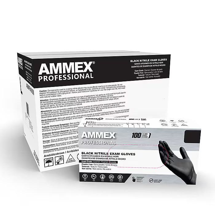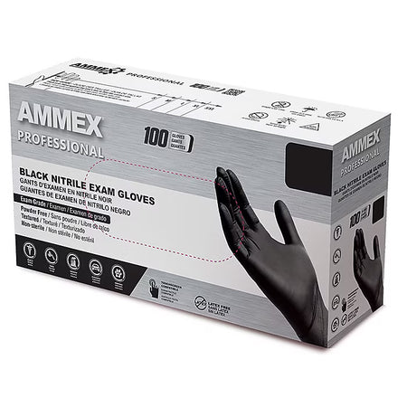 Ammex Professional Series Powder Free Nitrile Exam Gloves, Latex Free, Black, 100/Box
