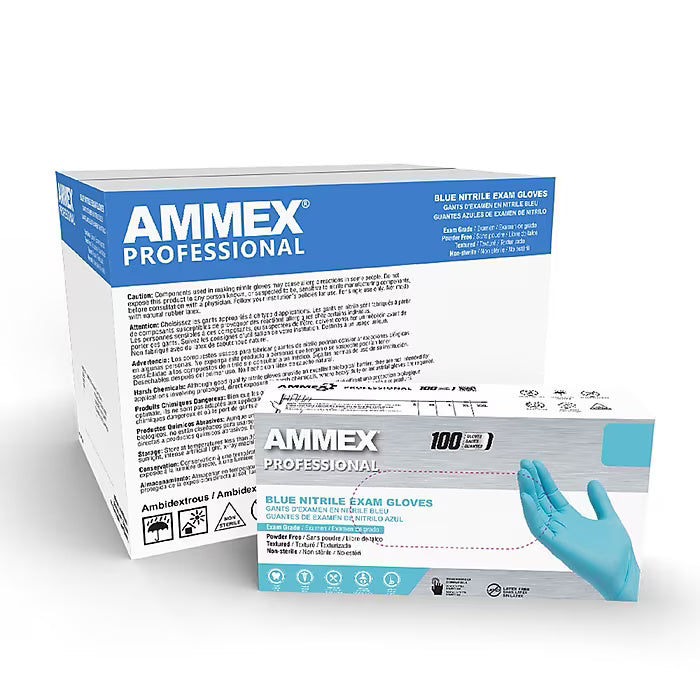 Ammex Professional Blue Nitrile Powder Free Exam Gloves set the standard for comfort and performance.