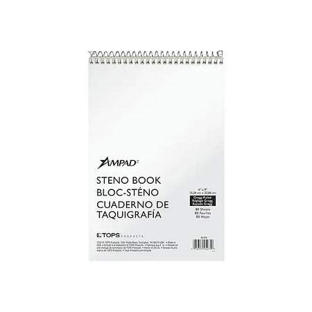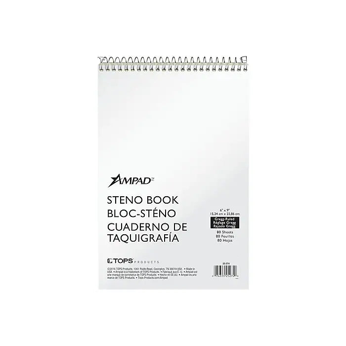 Ampad Steno Pad/Notepad 6" x 9", Gregg Ruled, White, 80 Sheets