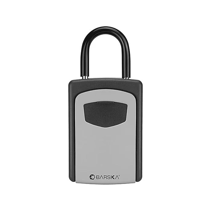 The Barska combination key lockbox with door hanger and wall mount is a versatile and heavy-duty security solution for storing keys outside or in public spaces. Whether you hang the combination key lockbox around a door handle or mount it to a wall, the protective rubber and foam surfaces covering the shackle and the back side will ensure that it will not damage the surface of what it's attached to. The four-digit code can be customized and reset, ensuring that only authorized users with the current code can open the lockbox. The shutter provides enhanced weather protection and potential dirt and debris resistance for the combination dial.