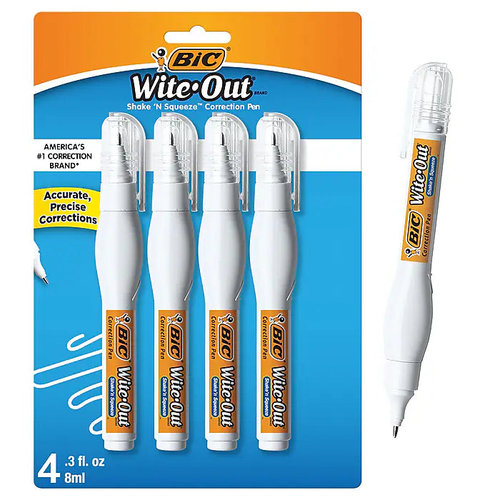 BIC Wite-Out Shake 'N Squeeze Correction Pen, 8 ml., White, 4/Pack (50745)