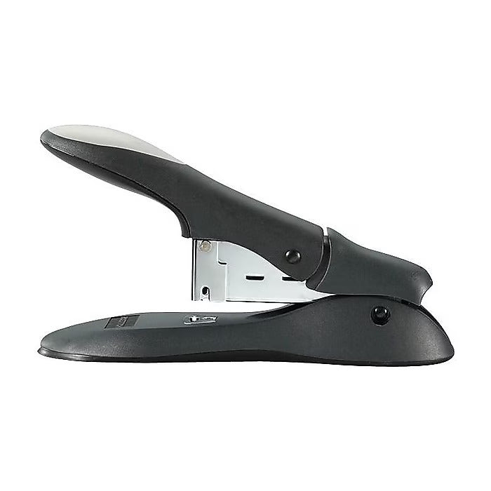 Tackle your heavy-duty stapling jobs without taking up space on your desk. Staples up to 60 sheets with one size staple. Flat clinch reduces corner stack-up. Heavy duty bi-material construction provides durability along with a comfortable grip. Anti-Jam mechanism virtually eliminates staple jams. Full rubber base pad. Small footprint fits nicely on desktop. Rear loading. Gray. Manufacturer's 7-year warranty. All sheet capacities based on 20lb-bond.