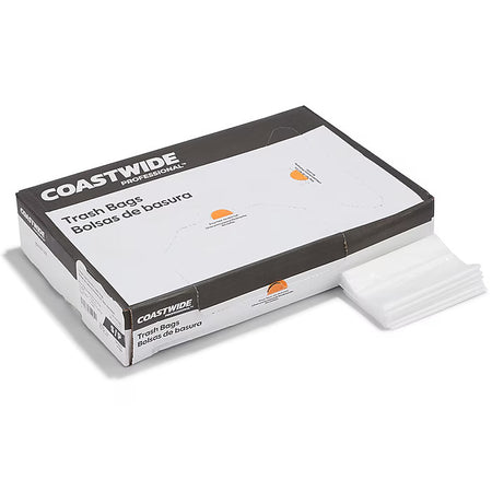 Line waste bins with these low-density trash bags. The clear construction keeps contents visible for an added layer of security, while the durable construction resists rips and tears to prevent spillage. Each bag features a star seal on the bottom for added strength and resilience. These Coastwide Professional™ trash bags come in a flat-pack container, which dispenses bags one at a time for easy access.