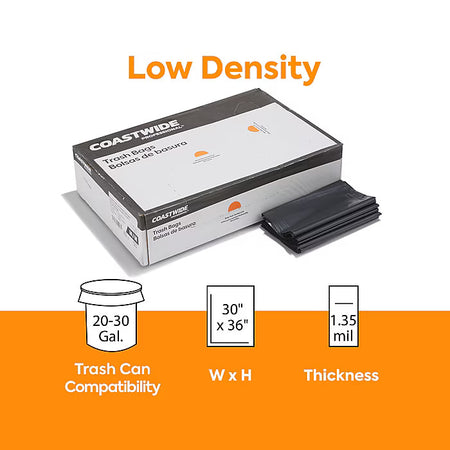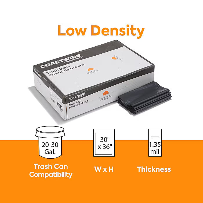 Coastwide Professional™ 20-30 Gallon Trash Bag, 30" x 36", Low Density, 1.35 mil, Black, 150 Bags/Box