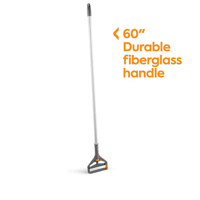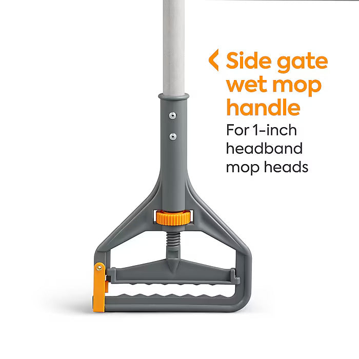 Get a convenient handle for 1-inch headband mop heads with this fiberglass side gate mop handle. The thumbwheel clamp keeps the mop securely in place, while the durable fiberglass handle offers durability, reliable performance and control. The 60-inch length lets you easily glide the mop across the floor. This Coastwide Professional fiberglass side gate mop handle has orange wayfinding guidance so you can easily switch out mop heads.