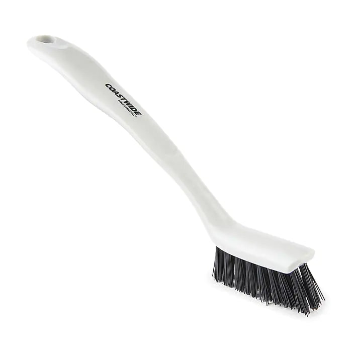 Scrub away dirt and debris from hard-to-reach spaces with this grout brush. The solid molded plastic handle provides a secure yet comfortable grip and is designed to clean efficiently in tight spaces. An integrated hole in the handle makes it easy to hang this Coastwide Professional gray grout brush on a wall hook or janitorial cleaning cart for convenient storage.