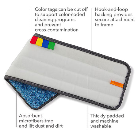 - Features color tags that can be cut off to support color-coded cleaning programs