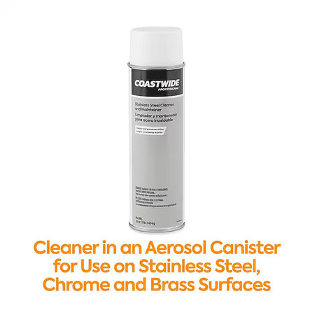 Stock up on office cleaning supplies with this stainless steel cleaner and maintainer in a handheld can. The water-based VOC-compliant formulation helps you restore the shine on stainless steel handles, bars, and various other surfaces. Featuring a color-coded label system, this canned Coastwide Professional handheld stainless steel cleaner and maintainer lets your cleaning staff easily identify the product in the supply cabinet.