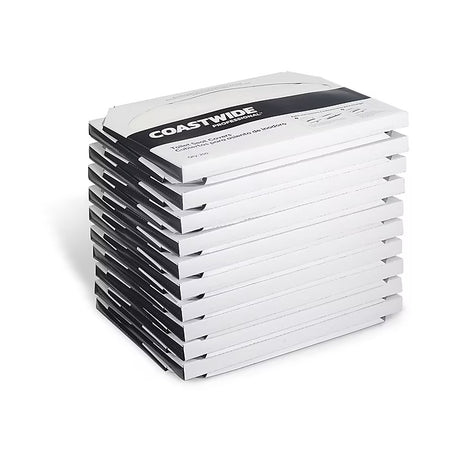 Provide a hygienic barrier for visitors and staff with these half-fold paper toilet seat covers. With 20 packs of 250 covers each, this carton makes it simple to keep maintenance carts and closets stocked and reduces the need for frequent refills. These Coastwide Professional toilet seat covers work with compatible Coastwide Professional dispensers and feature a flushable design that's safe for most septic systems.