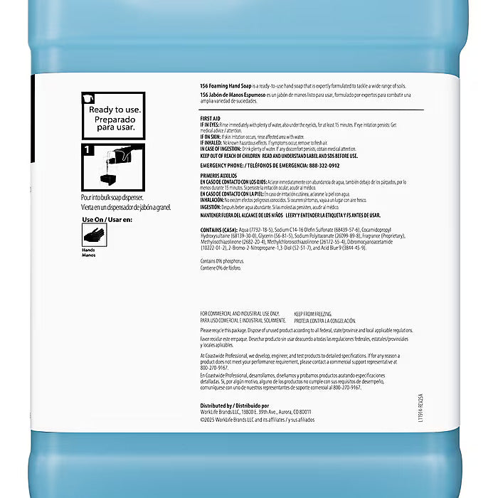Coastwide Professional™ 156 Foaming Hand Soap offers a luxurious handwashing experience while helping maintain cleanliness in shared spaces. Its rich foaming formula gently washes away dirt and grime, leaving hands soft, refreshed, and lightly scented with floral rose. Perfect for use in offices, restaurants, schools, hotels, and industrial facilities, this soap combines effective cleansing with skin-friendly care. The sturdy 1-gallon bottles feature a top grip handle for easy pouring and storage. With four bottles per carton, you can ensure your dispensers stay filled and ready for high-traffic use.