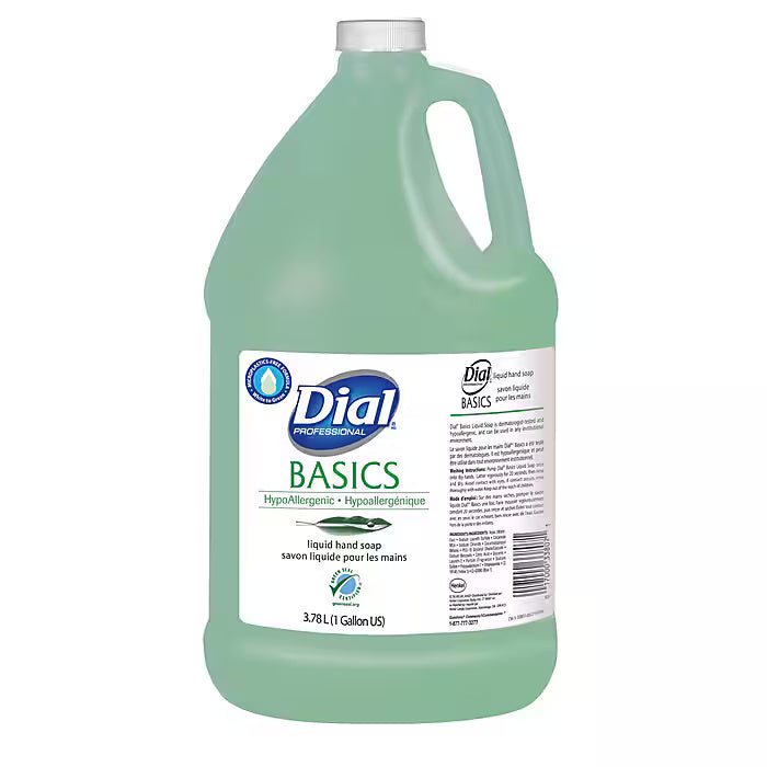 Cleanse hands gently with this hypoallergenic liquid soap. Lightly scented with a fresh floral fragrance, this hand soap has a rich lotion feel and contains moisturizers to condition skin, and the large 1-gallon bottle lets you refill multiple dispensers or stock up for future use. This Dial Basics moisturizing hand soap is dermatologist tested for mildness and ideal for frequent use, making it perfect for restrooms, in kitchens or placed near any wash area.