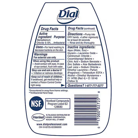 Help maintain a clean, safe environment with this foaming hand wash. Its active triclosan formula helps prevent the spread of bacteria and other germs, and it is hypoallergenic and gentle on the skin. These carton contains eight 7.5-ounce bottles of Dial Complete foaming hand soap with a pump dispenser for mess-free use.