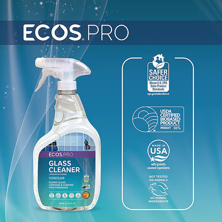 ECOS PRO Glass Cleaner, Vinegar, 32 oz Spray Bottle, 6/Carton (PL93006CT)