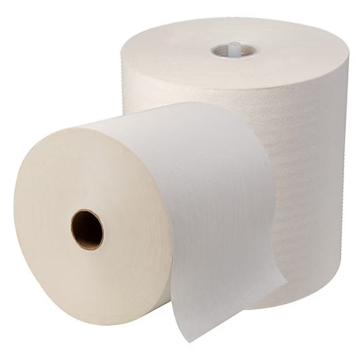 Hard wound roll towels offer the quality you expect to find in office breakrooms, doctor offices and any area where you want to make a good impression. Unique design with a plugged core makes it the perfect companion to the Georgia-Pacific SofPull mechanical touchless towel dispenser. Embossed, white, one-ply roll towels offer softness and absorbency.