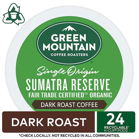 Brew a rich, refreshing single-serve cup of coffee with these dark-roast pods. With no loose coffee or filters to deal with, these K-Cups are a convenient mess-free option for any work space. Keurig Green Mountain Coffee Roasters Single Origin Sumatra Reserve K-Cups are organic, Fair Trade Certified and compatible with select Keurig pod coffee makers. Explore the complex flavors that thrive in the dense mountains of Indonesia. A deliciously dark body conjures a heady aroma of brown sugar and warm spices for a bold, sultry experience.