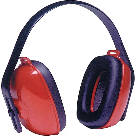 Howard Leight QM24+® Overhead earmuff in red color is made of dielectric material and is suitable for electrical environments. Earmuff has 25 dB noise reduction rates and features soft foam cushions for easy clean up with soap and water.