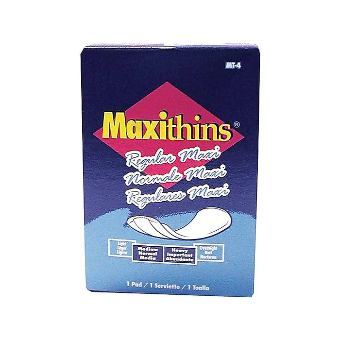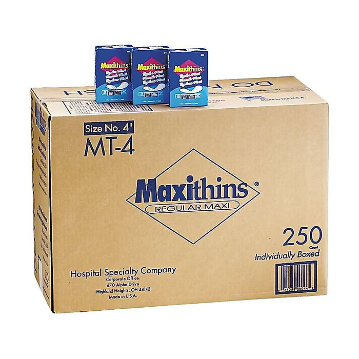 Provide access to personal care essentials with these Maxithins individually wrapped #4 sanitary napkins.