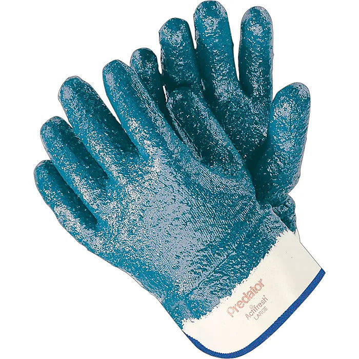 Memphis Gloves® Predator® Fully Coated Gloves, Nitrile, Lined Safety Cuff, Large, Blue, 12 Pair/Box