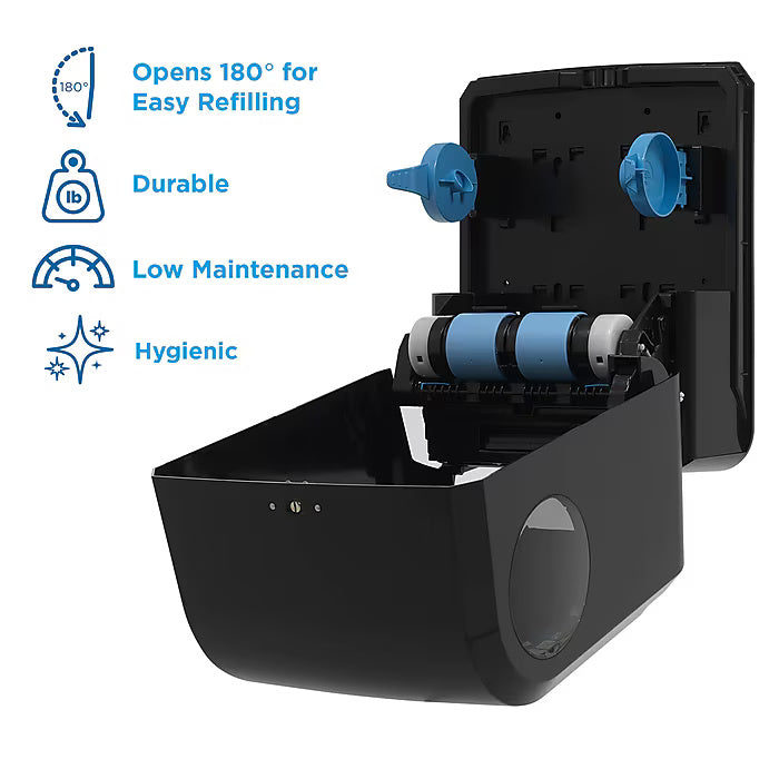 - High-capacity 1150' towel rolls last longer, requiring less maintenance and minimizing refill frequency. Extended battery life allows one set of batteries to last up to 90 rolls