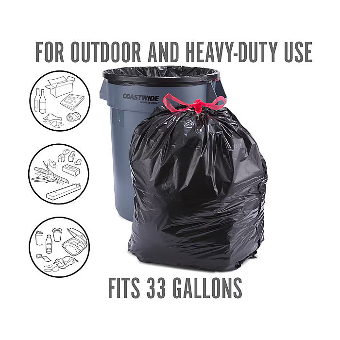 - 33 gal. heavy-strength industrial drawstring trash bags
