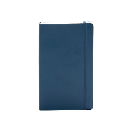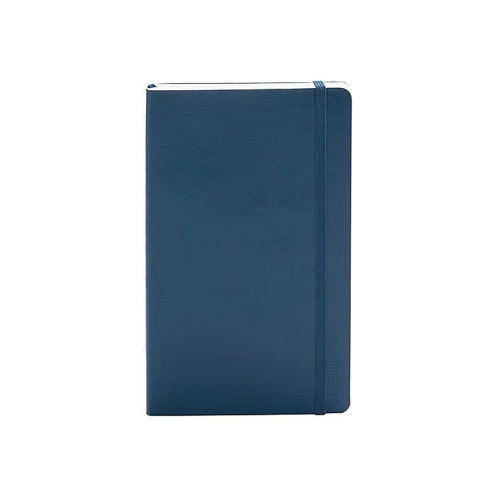 Enjoy the easy portability with this soft-cover notebook. With a portable and bendable design, this notebook is ideal for taking with you on the go and comes with an elastic closure, providing protection to pages and keeping your ribbon bookmark in place. This Poppin navy notebook has 192 lined white pages, providing plenty of room for sketches, charts and other projects.
