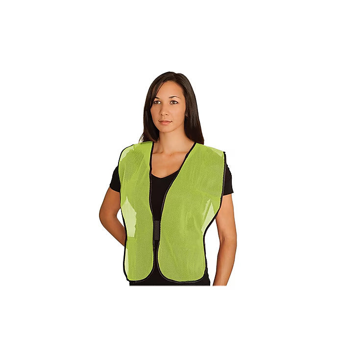 Stay safe when working with this vest. The lime-yellow color offers high visibility, ensuring that drivers, bikers and others using the area see you, while the hook-and-loop closure helps keep this vest securely in place even during strenuous activities. This PIP non-ANSI one-size safety vest is made from polyester mesh material, offering enhanced ventilation for a more comfortable experience.