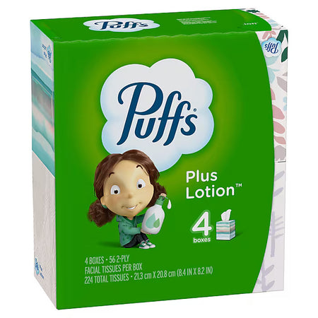 Puffs Plus Lotion Facial Tissue, 2-ply, 56 Tissues/Box, 4 Boxes/Pack (34899)