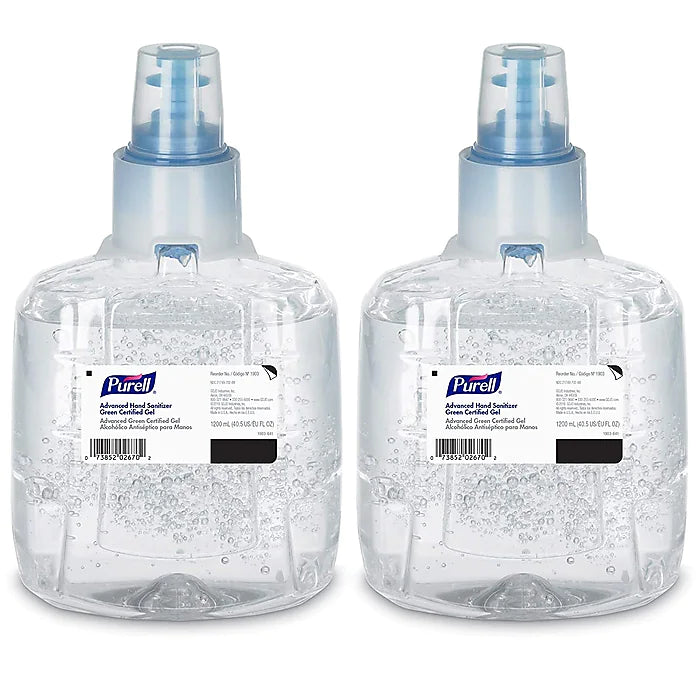 - Includes 2 - 1200 mL PURELL Advanced Green Certified Hand Sanitizer Gel Refills, compatible with PURELL LTX Touch-Free Hand Sanitizer Dispensers. Dispenser sold separately