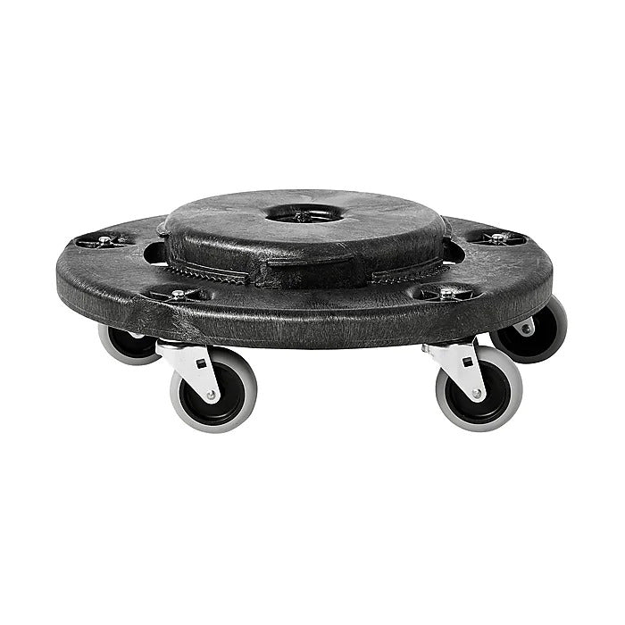 Rubbermaid round twist on/off dolly in black helps you move heavy waste containers easily.