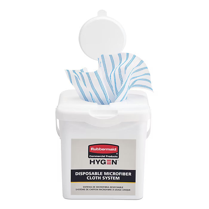 - Designed to hold up to 60 HYGEN™ 12" x 12" Disposable Microfiber Cloths and a facility's preferred solution.