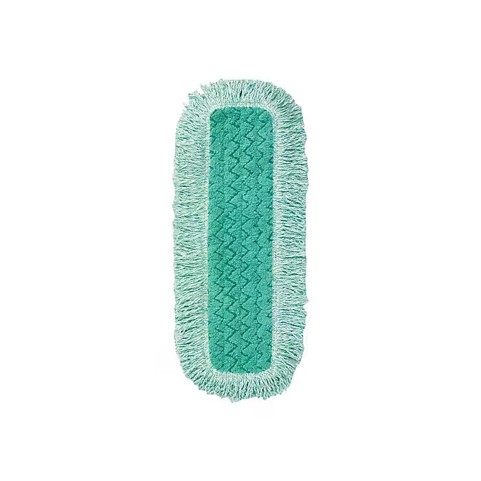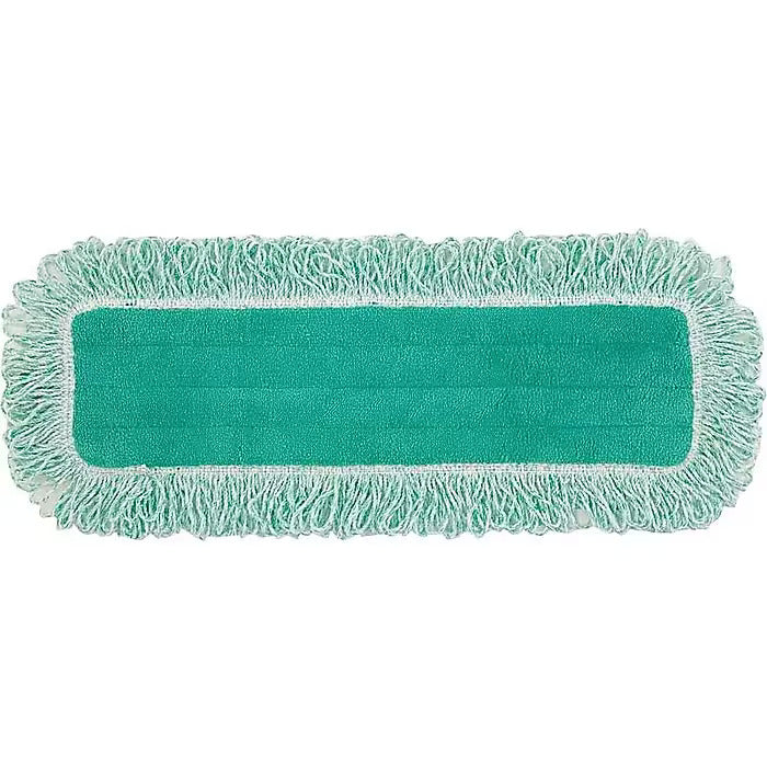 Provide greater surface area contact to speed cleaning in open areas with this dust mop pad. Dense electrostatic microfiber on this mop pad attracts dust and dirt while the looped fringe tackles larger debris. The double finish edges on this dust mop retain their shape through multiple washes for a quality clean every time. The durable construction of this Rubbermaid HYGEN mop pad allows it to be laundered up to 500 times.