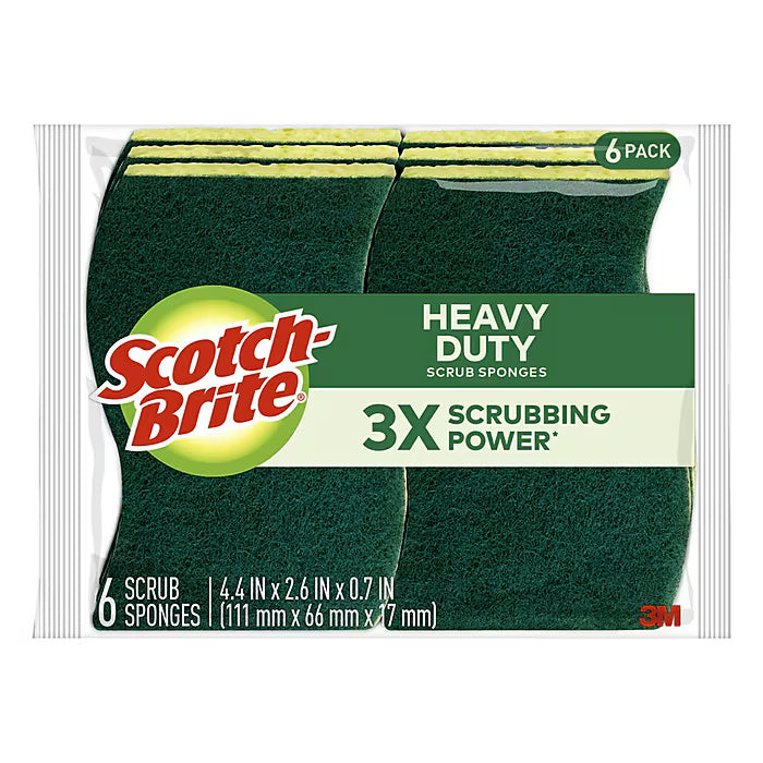 Don't fight baked-on, stuck-on messes - grab a Scotch-Brite Heavy Duty Scrub Sponge. With scrubbing fibers made from 100% recycled content, these long-lasting scrub sponges take on the toughest messes around the home.