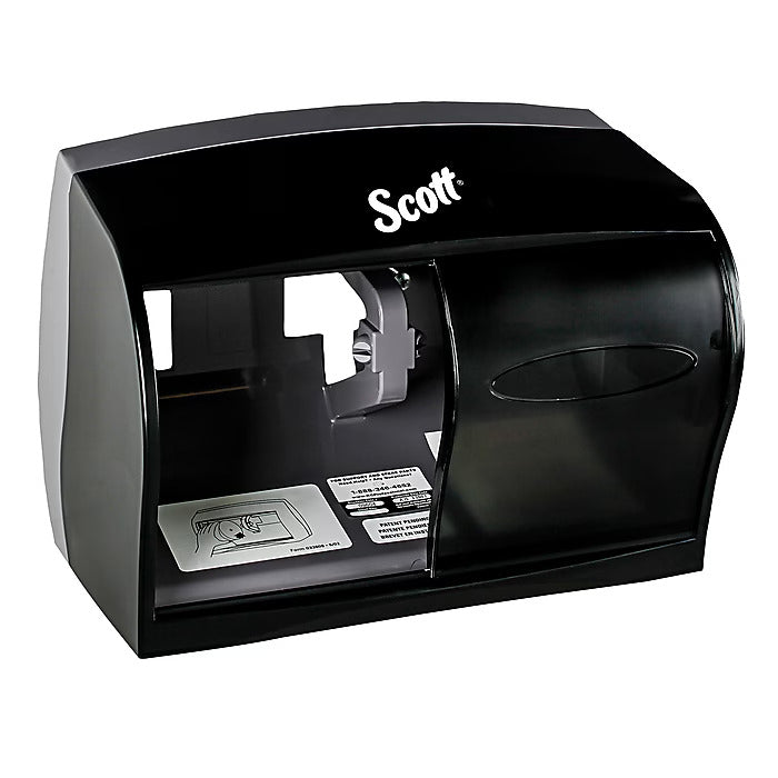 - 1 Scott® Essential Coreless Standard Roll Toilet Paper Dispenser/Case; Black; 2 Roll Capacity; 11.0" x 7.63" x 6.0"