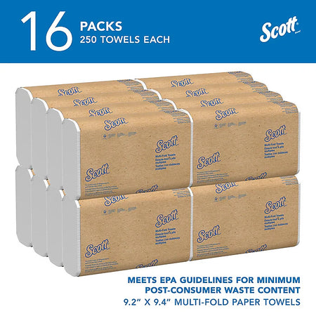 Scott Essential Recycled Multifold Paper Towels, 1-ply, 250 Sheets/Pack, 16 Packs/Carton (01804)