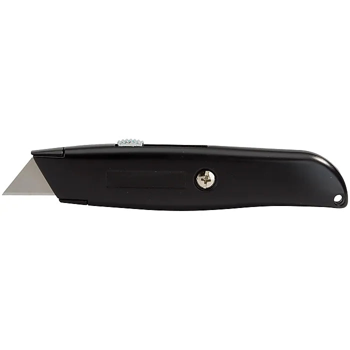- Retractable knife is ideal for use on cardboard, plastic, and twine