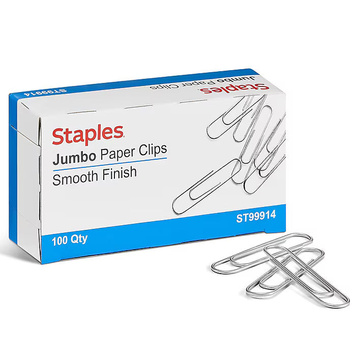 Staples Smooth Jumbo Paper Clips, Silver, 100 Clips/Pack