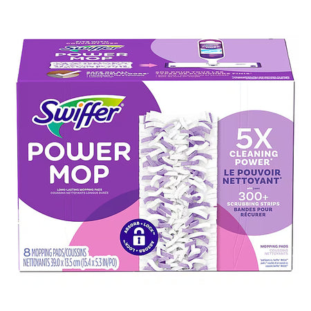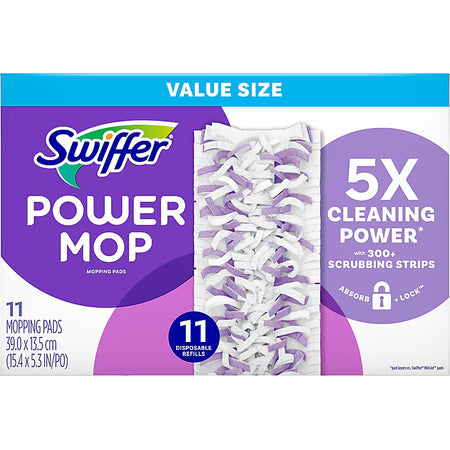 Mop smarter with the Swiffer PowerMop, an all-in-one mopping system that gives you a mop-and-bucket clean in half the time (including cleaning and drying time). The Swiffer PowerMop multi-surface mopping pad refill has more than 300 scrubbing strips that reach deep into grooves and grout to remove sticky spills and daily dirt and grime.