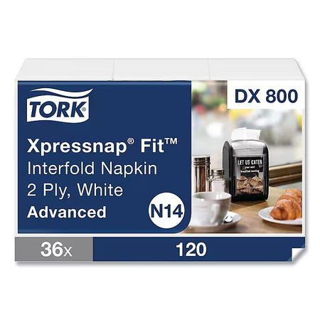 Tork Xpressnap Fit Dispenser Napkin, 2-Ply, White, 120 Napkins/Pack, 36 Packs/CT