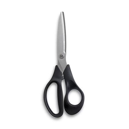 The black, ergonomic handle of these TRU RED™ 8-inch stainless steel scissors is perfect for everyday use, be it at home or in the office. The unique 3-D blades deliver a smooth cut every time while their stainless steel construction gives you both durability and consistent sharpness.