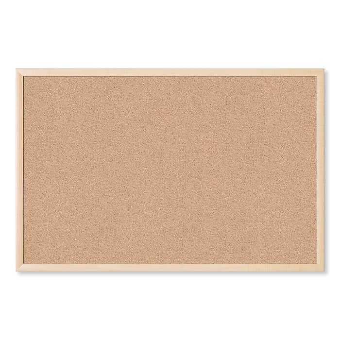U Brands Cork Bulletin Board, 35 x 23, Tan Surface, Birch Wood Frame