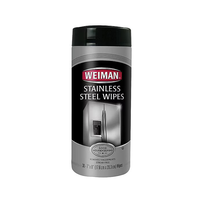 Give your appliances a new shine with these Weiman stainless steel wipes. The fresh-scented wipes leave a protective coating on your appliance's surface to repel dirt and dust, and they are designed to resist grease, watermarks, and fingerprints. These Weiman stainless steel wipes come in a canister of 30 wipes, which you can use for three to six months once you open the canister.