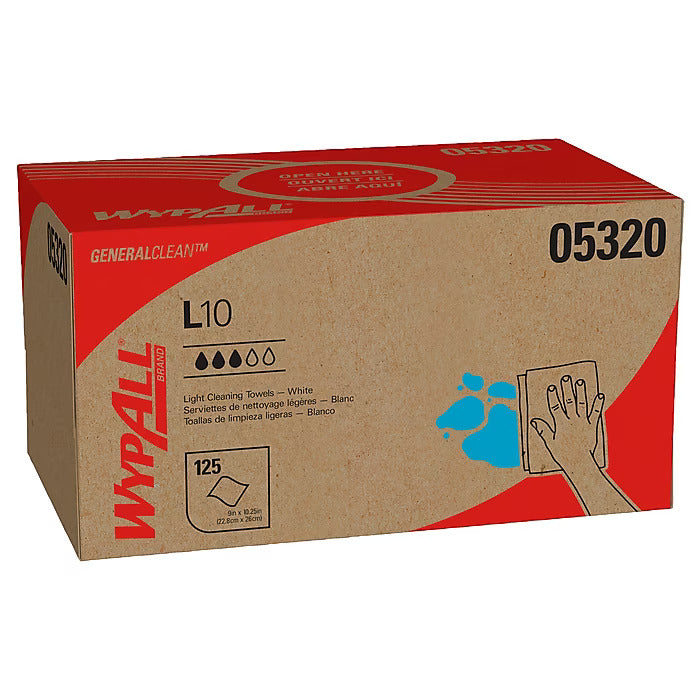 - WypAll® GeneralClean™ L10 Light Cleaning Towels; 125 Sheets/Box; White; Pop-Up Box; Limited Use Towels